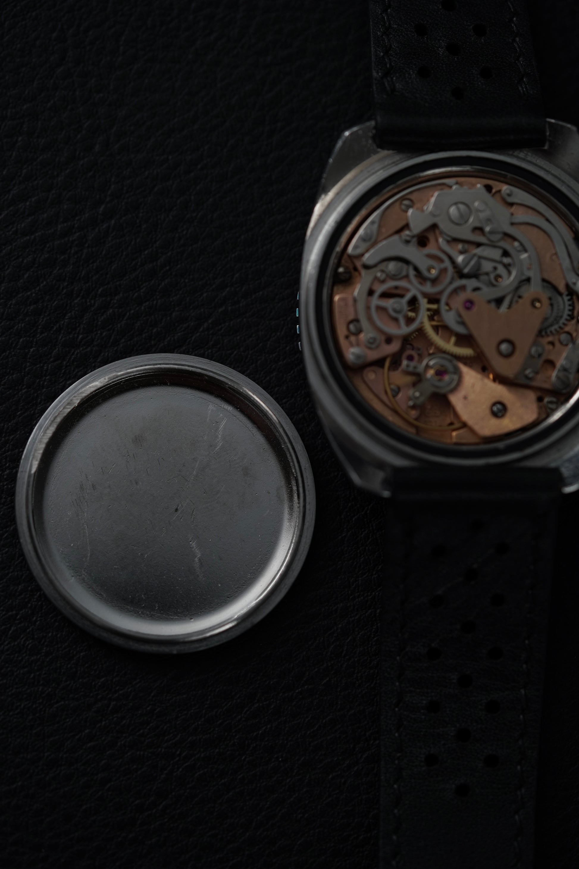 Il quadrante, nato blu notte, ha assunto con il tempo una splendida patina virata che lo rende unico, con i contatori a contrasto che ne esaltano la sportività.